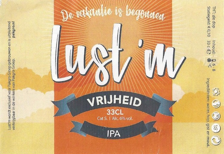 | Biernaam op etiket | Lust'm Vrijheid IPA |