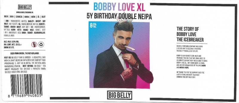 | Biernaam op etiket | Bobby Love XL 5Y Birthday Double NEIPA |