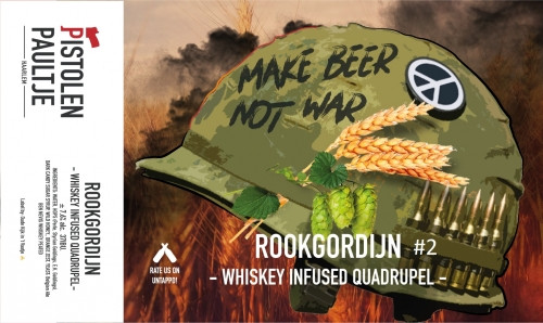 | Biernaam op etiket | Rookgordijn #2 Whiskey Infused Quadrupel |