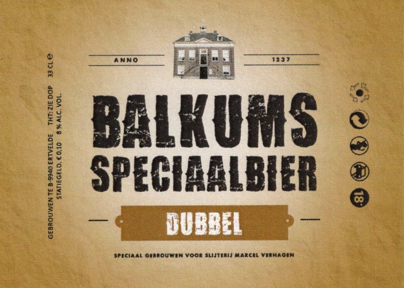 | Biernaam op etiket | Balkums Speciaalbier Dubbel |