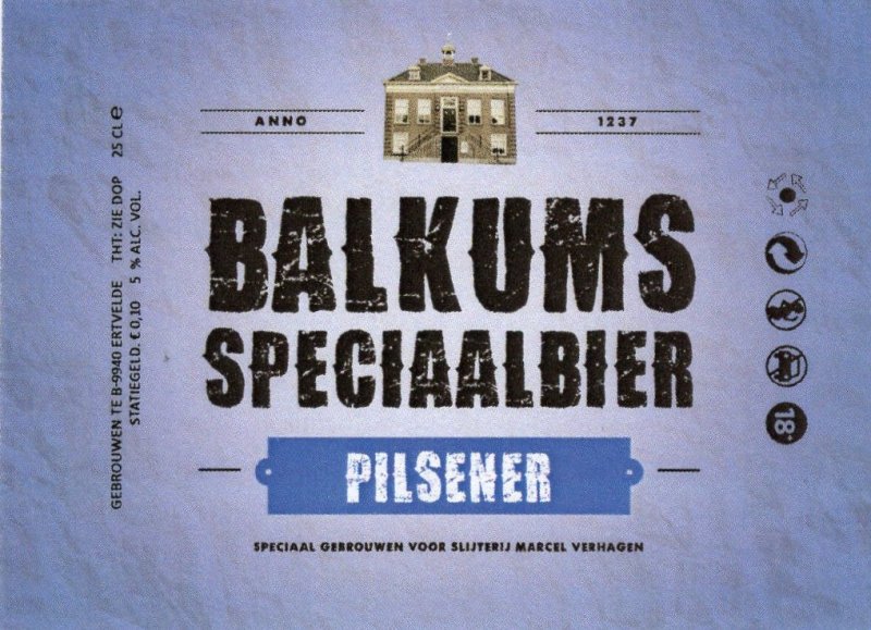 | Biernaam op etiket | Balkums Speciaalbier Pilsener |