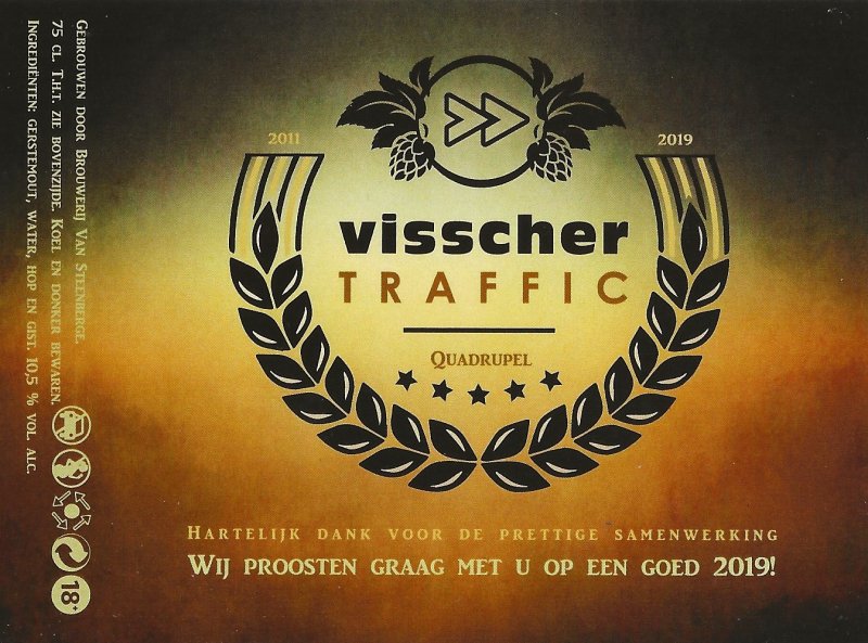| Biernaam op etiket | Visscher Traffic Quadrupel |
