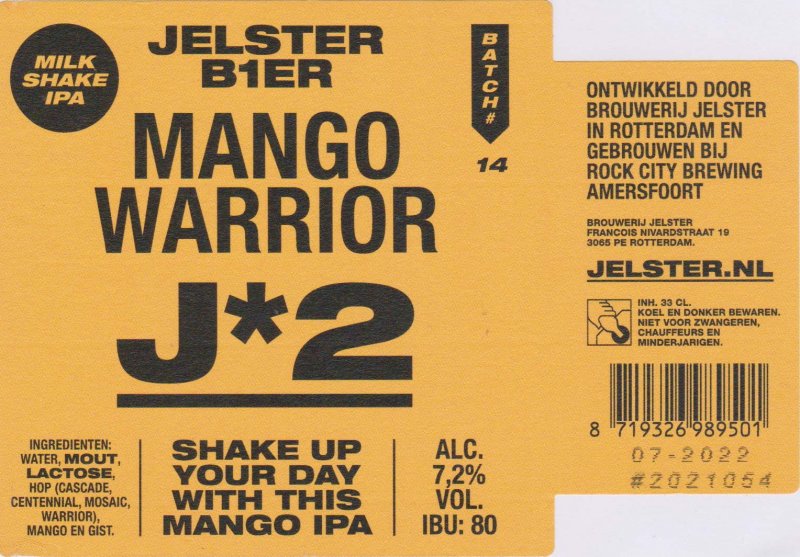 | Biernaam op etiket | Mango Warrior Milk Shake IPA J*2 |