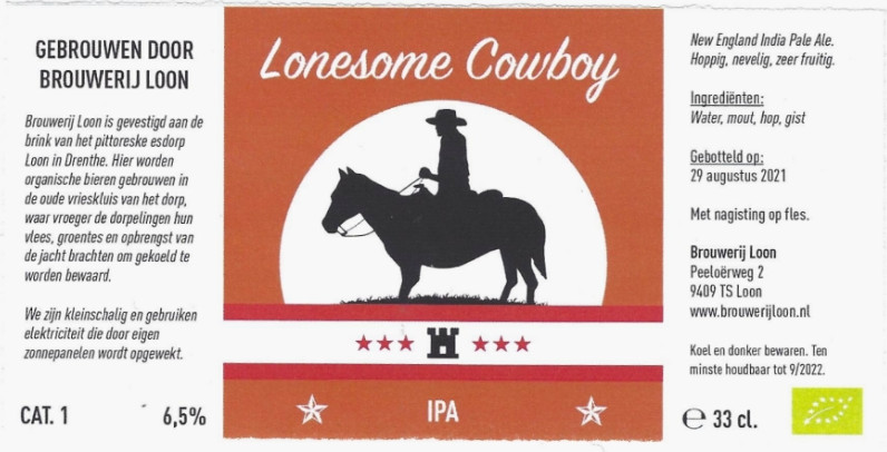| Biernaam op etiket | Lonesome Cowboy IPA |