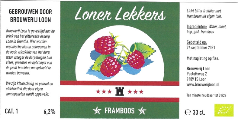 | Biernaam op etiket | Loner Lekkers Framboos |