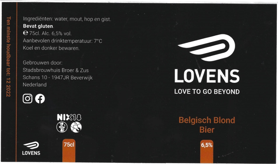 | Biernaam op etiket | Lovens Belgisch Blond Bier |