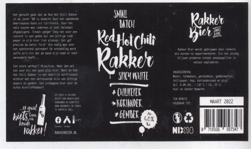 | Biernaam op etiket | Red Hot Chili Rakker Spicy White |